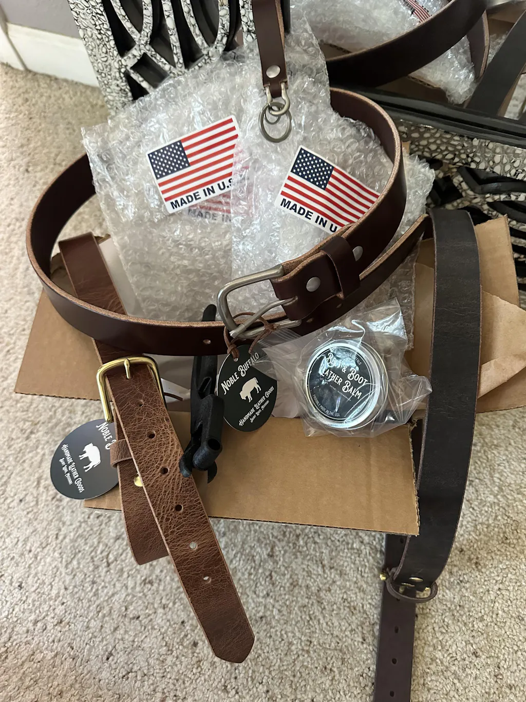 I went with Noble Buffalo in part because I wanted leather belts made from a single piece of leather. No layers or pieces of leather glued together that separate with time.
