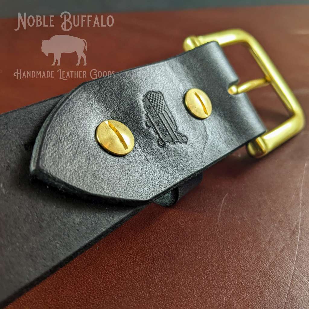 About The "Missouri Belt": The Missouri Belt is built to last, made from the thickest full-grain USA steerhide. The leather is tanned in St. Louis, then each strap is cut, beveled, burnished, polished with beeswax, and fully assembled by me (Noble Buffalo - also in St. Louis). Made from extra-thick 12-14oz leather (5mm to 5.5mm), this is the heaviest hide I’ve worked with. Built to last for decades, the Missouri Belt combines toughness with lasting quality.