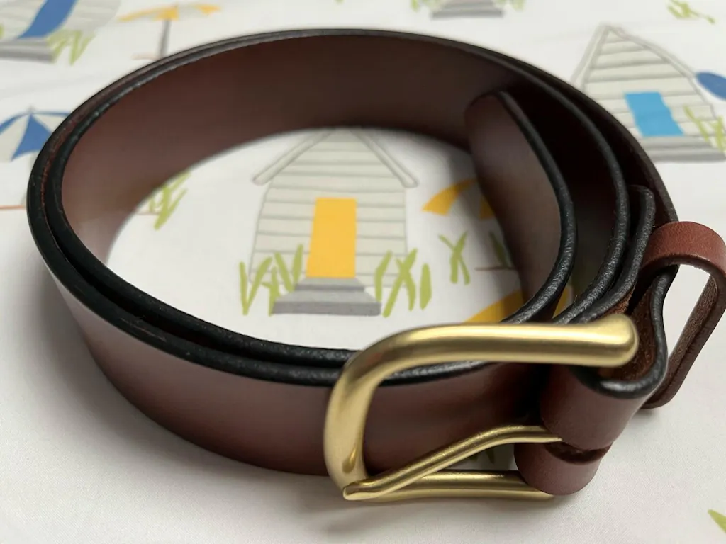 This leather belt is made to last a lifetime. Made from strong English Bridle leather, it’s tanned in Veracruz, Mexico, and handcrafted in the USA. The full-grain leather is durable enough for everyday wear but refined enough for dressier occasions. Over time, it softens and develops character, and a quick touch of leather balm keeps it looking sharp. Whether you're pairing it with jeans or dress pants, this belt is a solid, long-term addition to your wardrobe. With quality materials and classic craftsmanship, it’s a belt you can rely on for years to come.